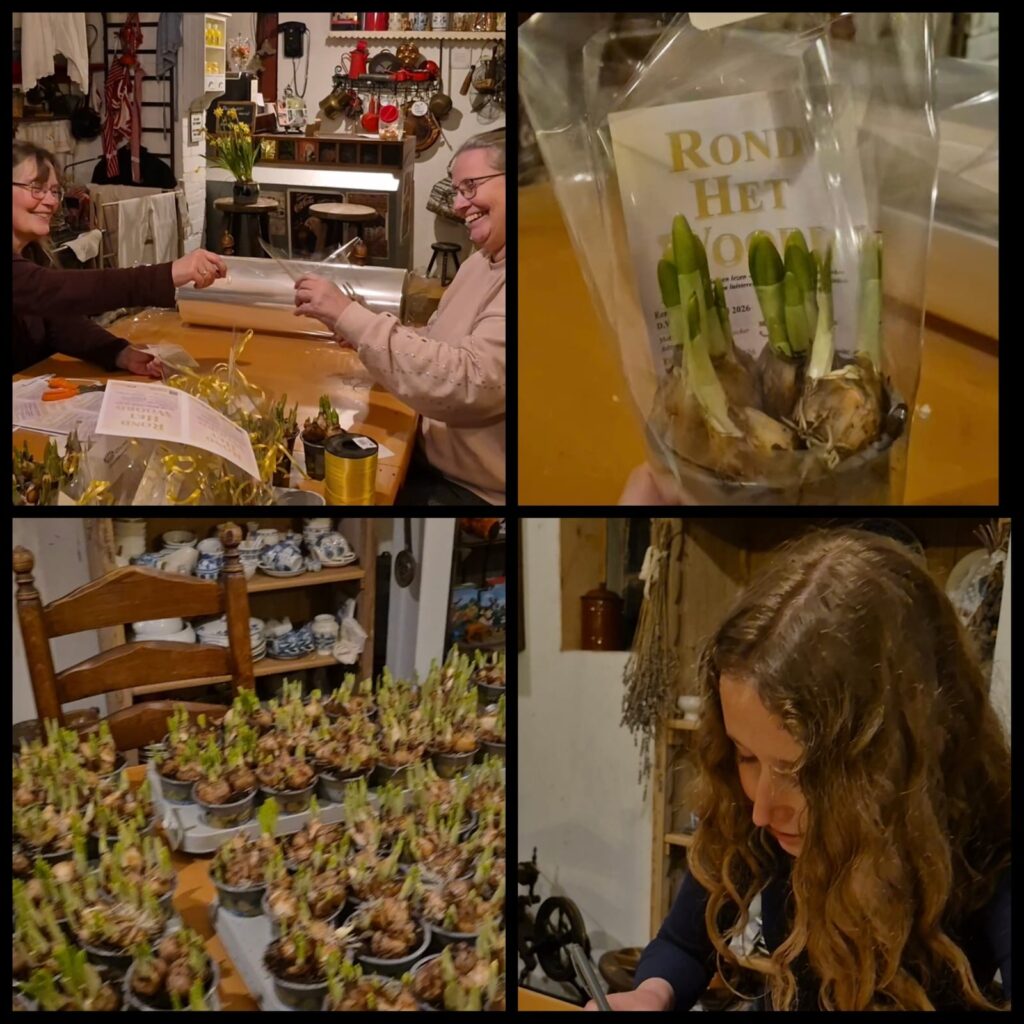 We zijn heel druk met mooie bloembolletjes in te pakken.